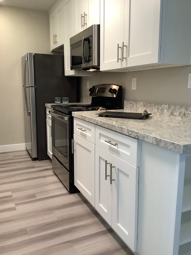 Carlsbad Coast Apartments offers renovated units that include washer/dryer stackable in select units, dishwasher, air conditioning, and heat. Designer wood vinyl flooring throughout each room and upscale lighting fixtures, and plumbing fixtures in bathroom and kitchen. Tenant parking options are parking stall, carport, and one car garage. The property offers shared use of the pool, gym and the barbecue grill.